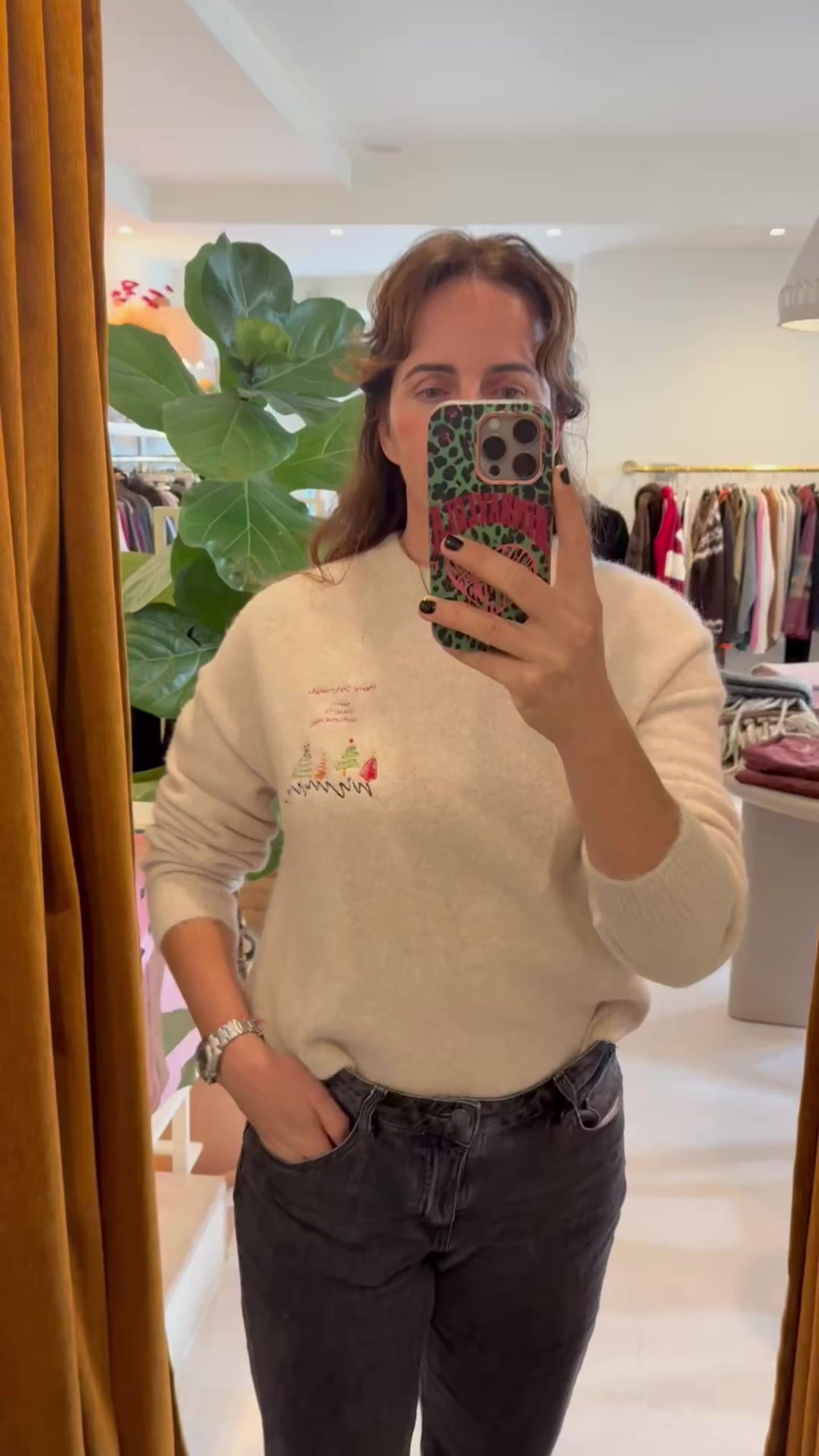 Camisola em tom cru, de decote redondo, confortável e super macia - não pica-.  Tem um pormenor bordado ao peito alusivo ao Natal.